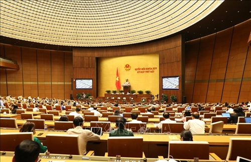 6月7日,第十四届国会第七次会议进入第十五个工作日。国会主席阮氏金银主持会议。
