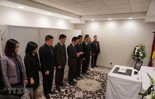 当天共有数十个国家常驻联合国代表团和联合国下属机构代表、国际朋友及在美越南人、越侨前来参加吊唁仪式并在吊唁簿上留言寄托哀思。