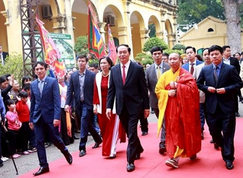 国家主席陈大光出席在升龙皇城举办的2017丁酉年新春上香仪式(图片来源:baophapluat.vn)