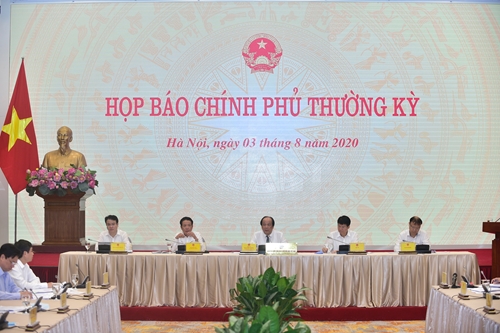越南政府办公室主任、政府发言人梅进勇部长8月3日下午主持政府7月例行新闻发布会。梅进勇部长在会上强调在新冠肺炎疫情形势严峻的背景下,须优先实现防疫和促进经济社会发展双重目标。