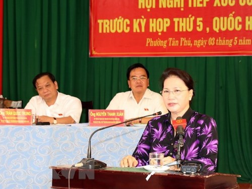 3日下午,国会主席阮氏金银和芹苴市国会代表团在第十四届国会第五次会议召开前在采朗县新富坊开展接待选民活动。