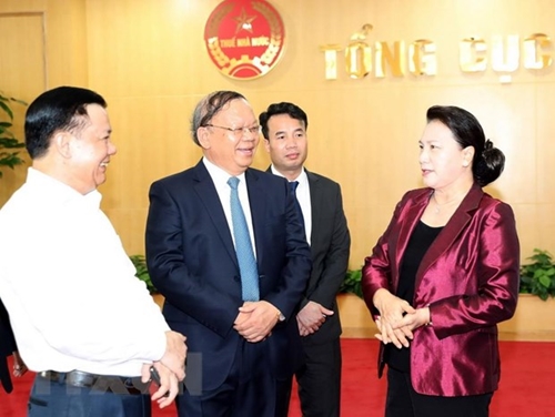 6月20日在河内,越南国会主席阮氏金银莅临财政部国家税务总局调研。