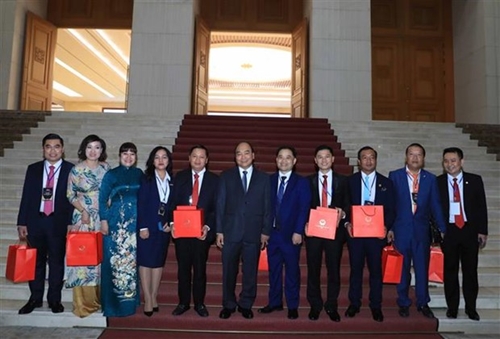 12月18日下午,越南政府总理阮春福会见荣获红星奖青年企业代表。