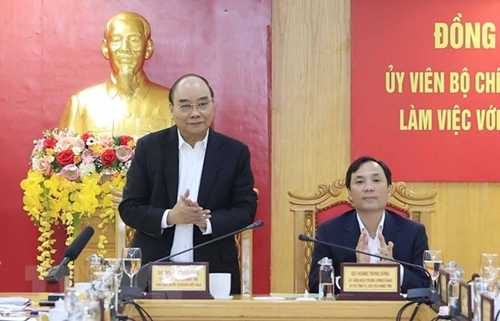 国家主席阮春福与河静省主要领导干部举行工作会谈(图片来源:越通社) |