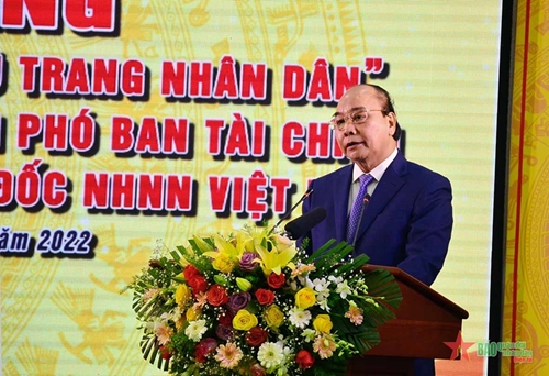 越南国家主席阮春福在仪式上发言(图片来源:人民军队报) |
