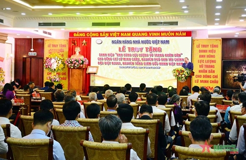 人民军队:3月16日下午在胡志明市,越南国家主席阮春福出席仪式,向已故的N2683特别财政部原副部长、原越南国家银行总经理吕明珠同志追授人民武装力量英雄称号。