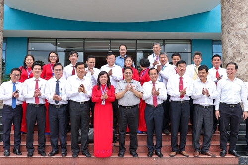 范明政总理和芹苴医药大学领导、干部、教师、工作人员合影(图片来源:baochinhphu.vn) |