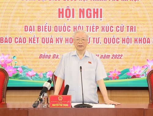 11月19日,越共中央总书记阮富仲与河内市国会代表团、第一号选举单位代表开展与巴亭郡、栋多郡、二征夫人郡选民的接触活动,通报越南第十五届国会第四次会议结果并听取选民们的意见和建议。