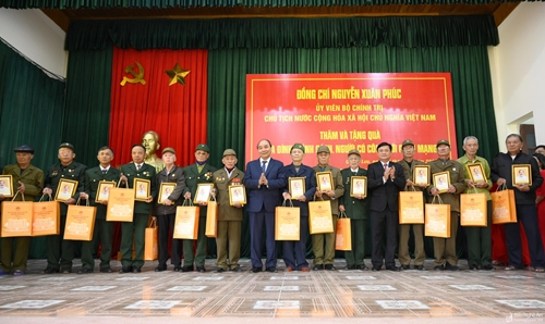 阮春福还向琼流县琼兑乡革命战争时期有功人员送去慰问品(图片来源:baonghean.vn) |