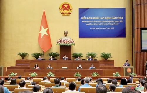 值越南工会成立94周年(1929.7.28-2023.7.28)之际,越南国会主席王廷惠7月28日在国会大厦主持召开了以“完善与劳动者和工会有关的法律政策”为主题的2023年劳动者论坛。
