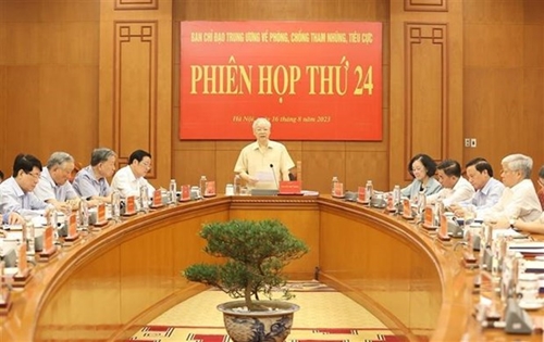越共中央总书记、中央反腐败反消极指导委员会(以下简称:指导委员会)主任阮富仲于8月16日在河内主持召开指导委员会第24次会议,对2023年前6个月指导委员会的活动成果进行讨论并提出意见;回顾越共第十三届任期以来预防和打击腐败和消极现象工作;部署今年下半年和今后的工作重点任务。