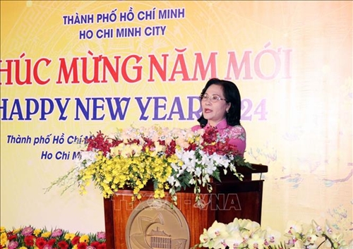 值此喜迎2024年甲辰龙年春节之际,1月31日晚(农历2023年12月21日),胡志明市党委、人民委员会、人民议会、胡志明市越南祖国阵线委员会等领导代表与各国和各地区驻胡志明市总领事、国际组织首席代表、经济文化办事处、商业协会等代表举行新春见面会。