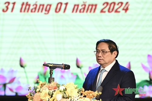 越南政府总理范明政在发表讲话时重申了胡志明主席的教导“文化照亮国民前行之路”以及阮富仲总书记的话“文化存则民族存,文化为民族之魂”。范明政总理强调,文化对争取民族独立和国家快速可持续发展事业起到举足轻重的作用并做出重大贡献。