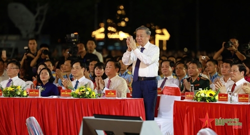 苏林总书记、国家主席出席“他老人家的遗嘱”特别艺术节目(图片来源:人民军队报) |