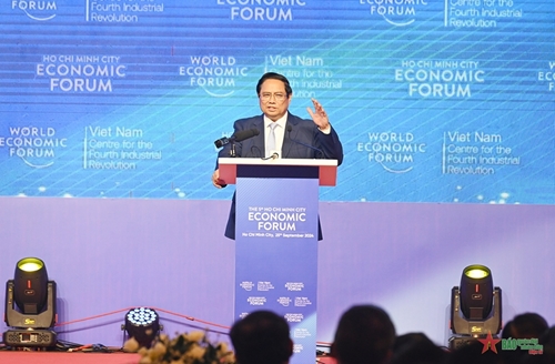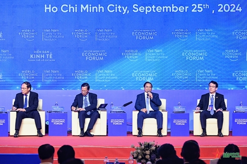 出席在胡志明市举行题为“产业转型胡志明市可持续发展的新动力”的第五届胡志明市经济论坛期间,9月25日下午,越南政府总理范明政与国内外专家和企业家举行政策对话。