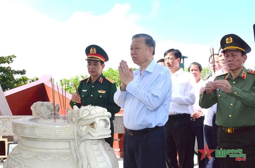 趁此机会,苏林一行已前往岛上的胡志明主席纪念馆和烈士英雄纪念碑敬献花圈和上香。