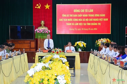苏林总书记、国家主席在会上讲话时强调,广治省是一片具有英雄豪迈历史、富有革命传统的土地,人民坚韧不拔,始终怀有崛起的坚强意志和渴望。广治省具有特别重要的地缘经济、政治、军事地位,是越南民族捍卫祖国的长期征战的历史支点,也是众多革命英雄豪杰人物、优秀革命战士的故乡。