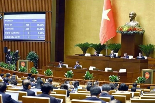 11月26日下午,越南第十五届国会第八次会议上,在座的456名国会代表中有455名代表赞成通过《城乡规划法》。