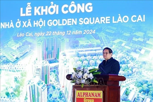 12月22日下午,越南政府总理范明政视察了老街—河内—海防铁路建设项目并出席了老街省老街市保障性住房建设项目动工仪式。