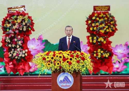越共中央总书记苏林在庆典上发表讲话(图片来源:人民军队报)