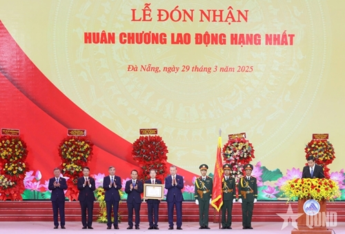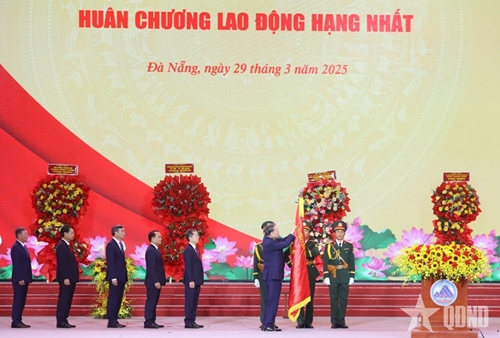 苏林总书记代表党和国家领导授予岘港市党委、政府和人民一等劳动勋章(图片来源:人民军队报) |