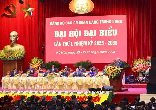 2025-2030年任期越共中央党机关第一次代表大会9月24日上午在河内隆重开幕,代表着14个直属党委8700多名党员的293名代表与会。越共中央总书记苏林出席会议并发表指导性讲话。