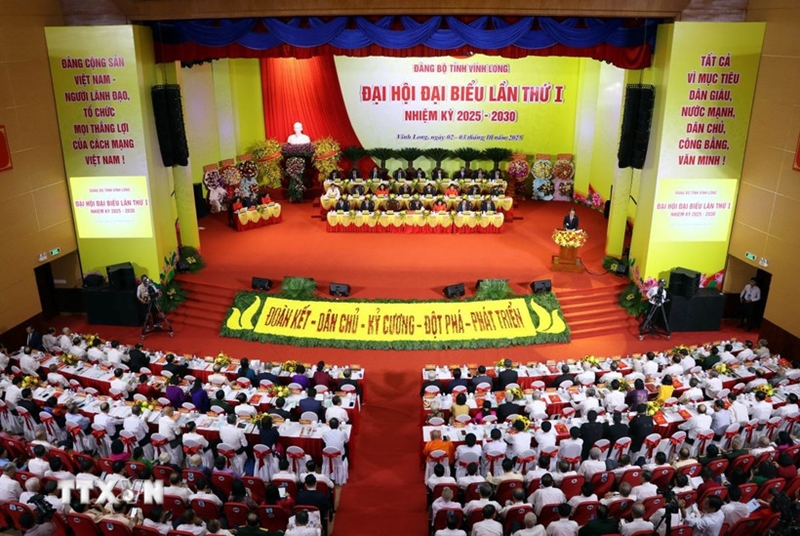 10月3日上午,越共永隆省第一次代表大会(2025—2030年任期)隆重开幕。越共中央总书记苏林送来花篮表示祝贺。越共中央书记处书记、最高人民法院院长黎明智出席并发表指导讲话。