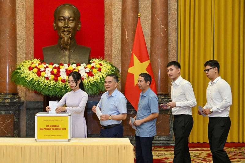 人民军队:10月3日下午,越南国家主席办公厅在主席府举行捐款活动,支援遭受第10号台风“博罗依”影响的灾区民众。