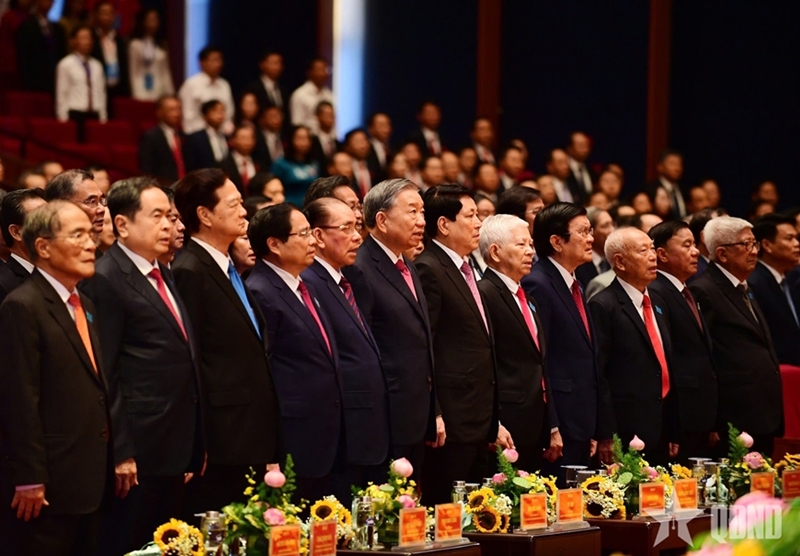 原越共中央总书记农德孟、越南国家主席梁强、原国家主席阮明哲、原国家主席张晋创、政府总理范明政、原政府总理阮晋勇、国会主席陈青敏、原国会主席阮生雄、原国会主席阮文安、中央书记处常务书记陈锦秀等领导与会。