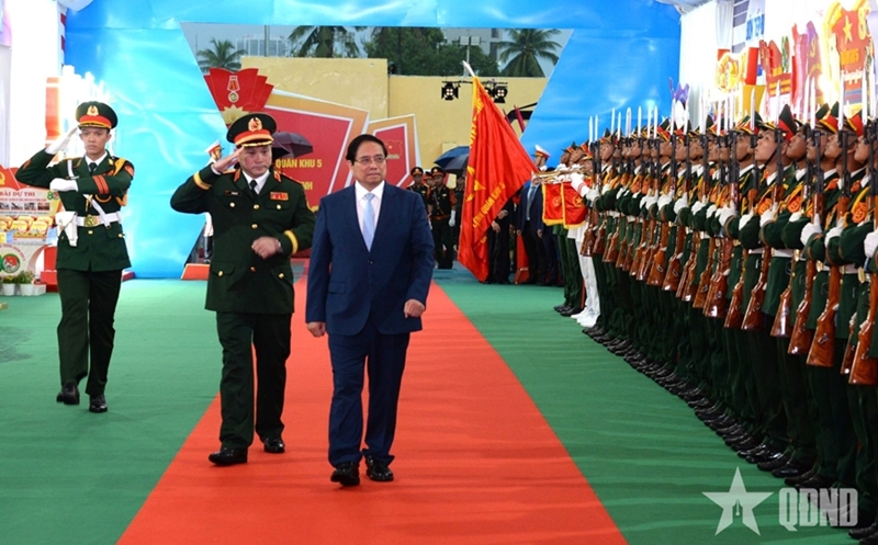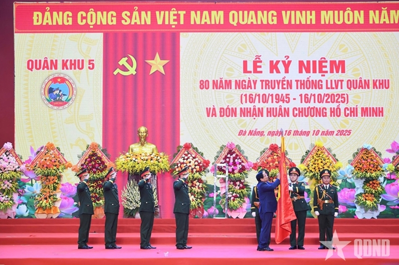 10月16日下午,越南政府总理范明政出席第五军区武装力量传统日80周年(1945.10.16-2025.10.16)纪念典礼暨第三次胡志明勋章授勋仪式。