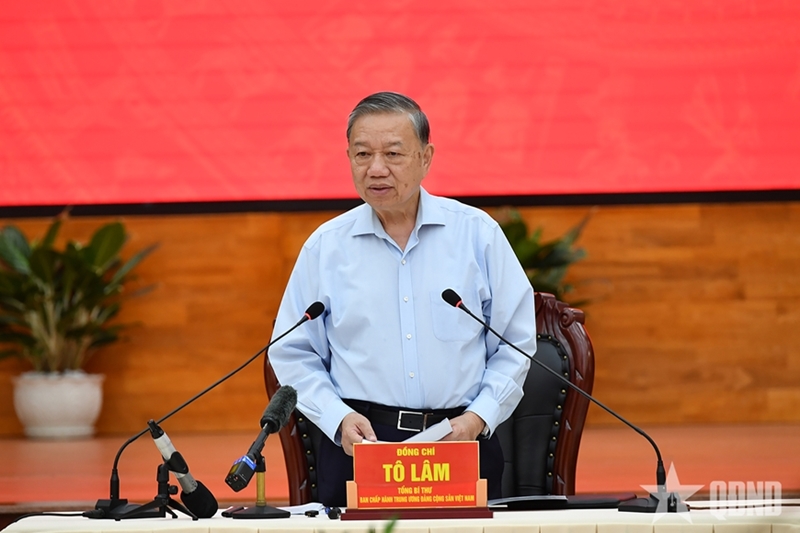 越共中央总书记苏林在会上发表讲话(图片来源:人民军队报) |