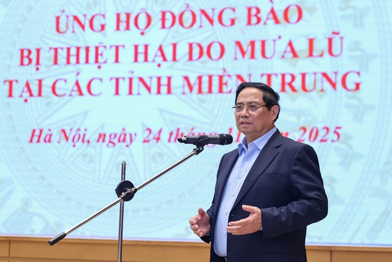 越南政府总理范明政与政府、政府党委、政府办公厅领导和干部职工集体每人为受自然灾害影响的同胞至少捐出一日工资,发扬越南人团结友爱、互帮互助精神。