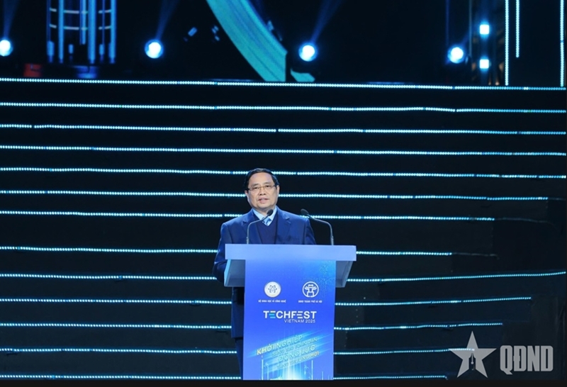 越南政府总理范明政在2025年科技创业节发表讲话(图片来源:人民军队报)