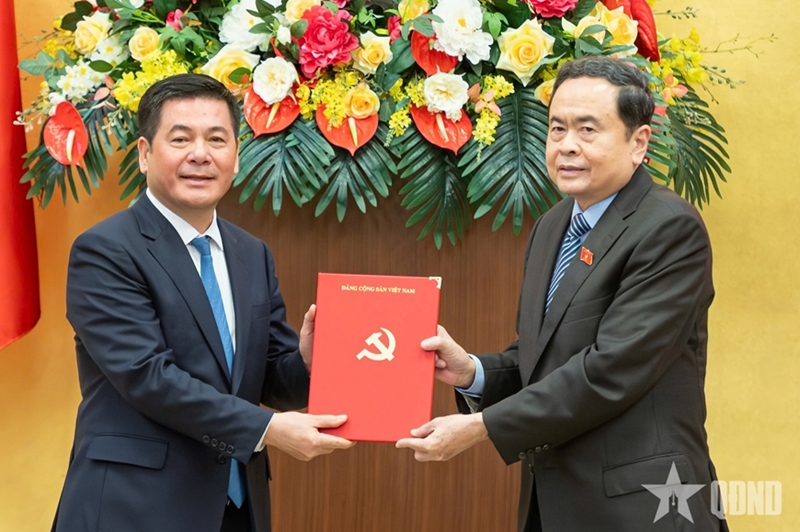 越南国会主席陈青敏向阮鸿延同志颁发任命决定(图片来源:人民军队报) |