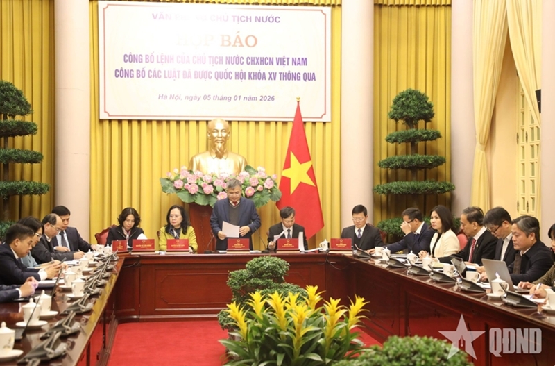 1月5日下午,越南国家主席办公厅在河内举行新闻发布会,正式公布由越南社会主义共和国主席签署的主席令,颁布第十五届国会第十次会议通过的13部重要法律。
