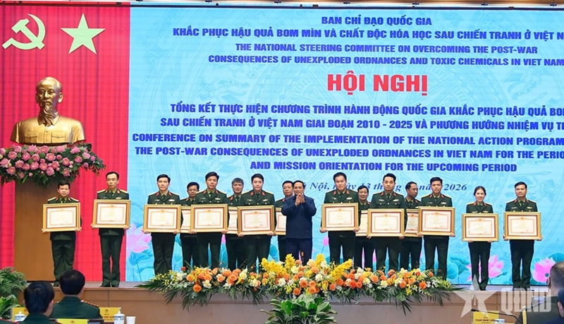 1月13日下午,越南政府总理、越南战后炸弹地雷及化学毒剂处理国家指导委员会(简称指导委员会)主任范明政主持召开会议,总结2010-2025年阶段处理战后遗留炸弹地雷后果国家行动计划(504号计划)执行情况,并部署下一阶段的方向与任务。