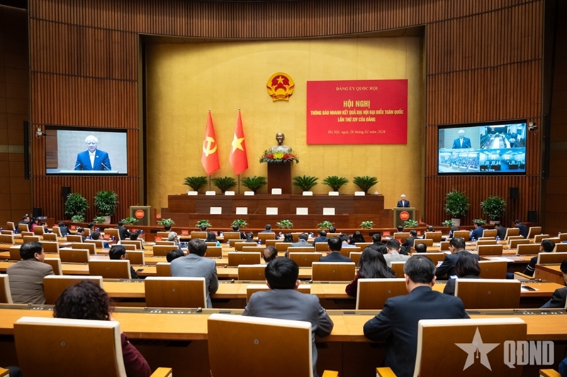 1月26日下午,越南国会党委在国会大厦召开越南共产党第十四次全国代表大会成果通报会。