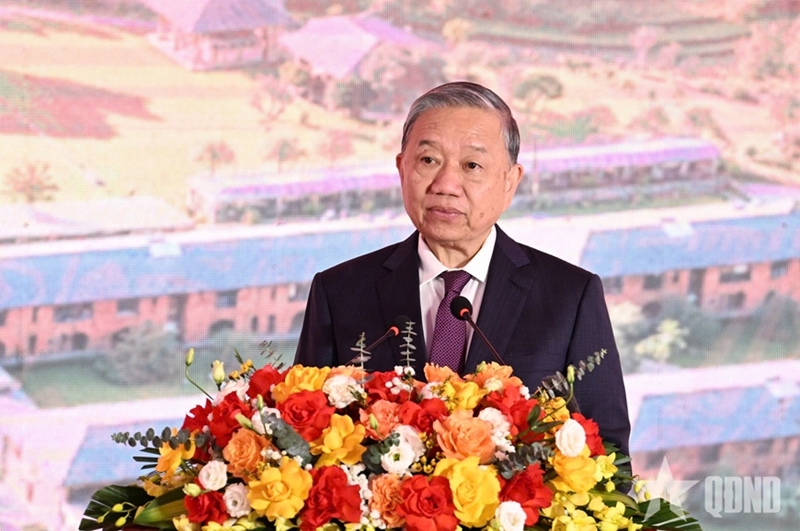 苏林总书记在动工仪式上发表讲话(图片来源:人民军队报) |