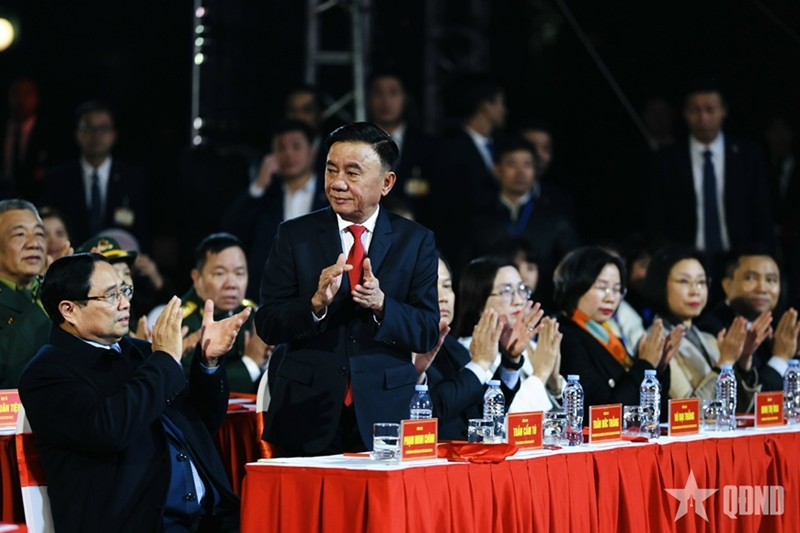 越共中央总书记苏林,原总书记农德孟,原中央书记处常务书记潘演、陈国旺等出席在高平省长河乡北坡(Pác Bó)国家特别遗迹区主会场。