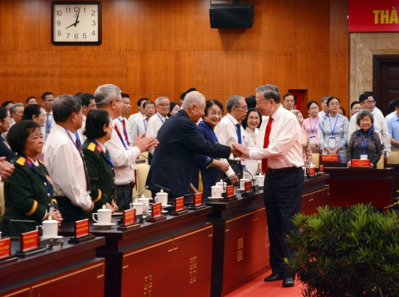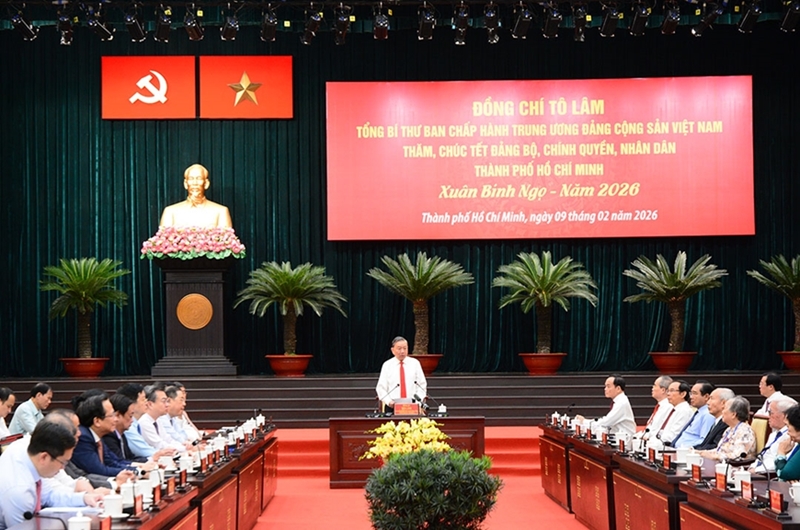 苏林总书记代表党和国家领导人,向胡志明市各位领导、原领导、革命元老、越南英雄母亲、人民武装力量英雄、劳动英雄、优抚家庭以及全体同胞和同志致以亲切的问候和最美好的新春祝愿。