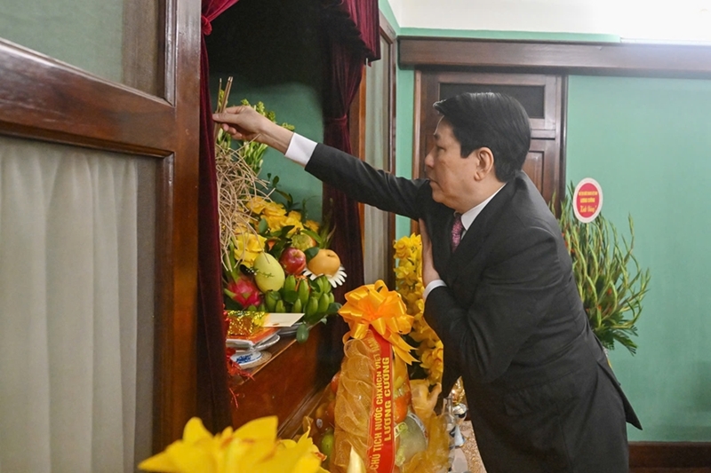 2月13日,值此越南共产党成立96周年及喜迎2026丙午春节之际,越南国家主席梁强前往设在主席府胡志明主席遗迹区的67号房进香,缅怀胡志明主席。