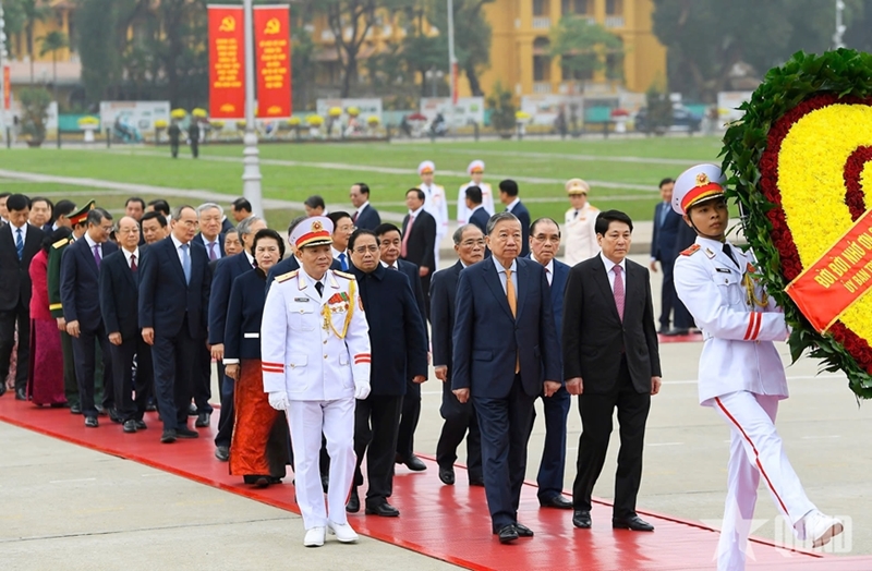 同日上午,中央军委与国防部代表团;中央公安党委与公安部代表团;河内市委、市人民议会、市人民委员会代表团等也前往胡志明主席陵敬献花圈、瞻仰遗容,并向英雄烈士敬献花圈。