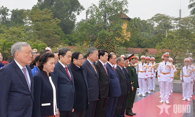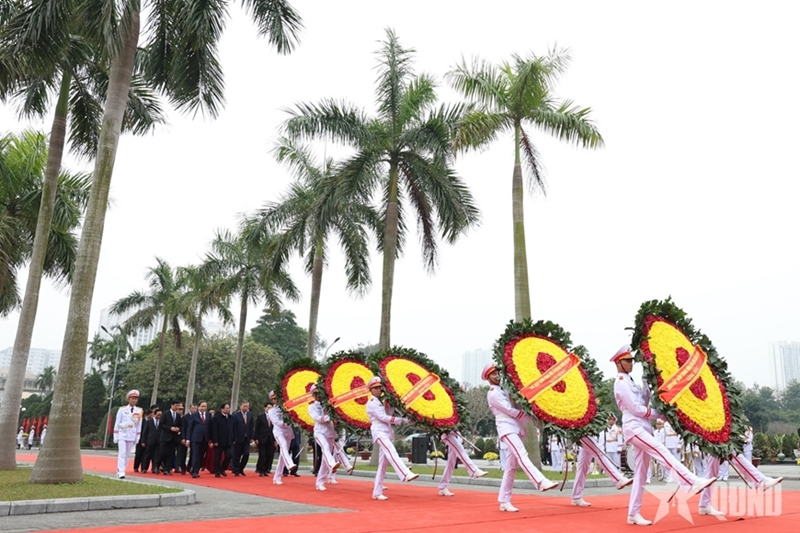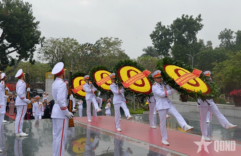 其后,中央委员会、国会、国家主席、政府、越南祖国阵线中央委员会代表团前往河内北山路烈士纪念碑,向英雄烈士敬献花圈并上香缅怀。