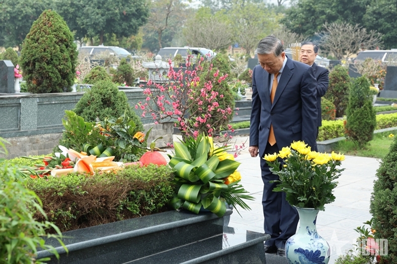 2月13日上午,党和国家领导人代表团还前往河内梅驿公墓,向革命先辈和英雄烈士敬献花圈、上香致敬。