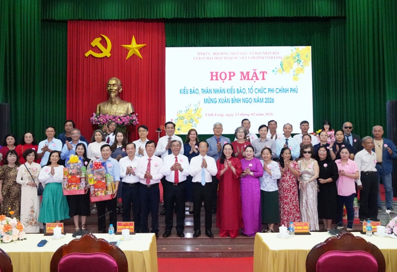 2月13日,永隆省委、人民议会、人民委员会、越南祖国阵线委员会永隆省分会举行侨胞、侨胞亲属及非政府组织乙巳年新春见面会。