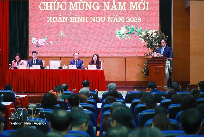 2月23日下午,越南政府总理范明政与越南文化体育旅游部就落实越共十四大关于文化领域的决议及中央政治局关于发展越南文化的第80-NQ/TW号决议召开工作会议。