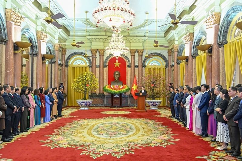 越南国家主席梁强与国家主席办公厅干部举行新春见面会