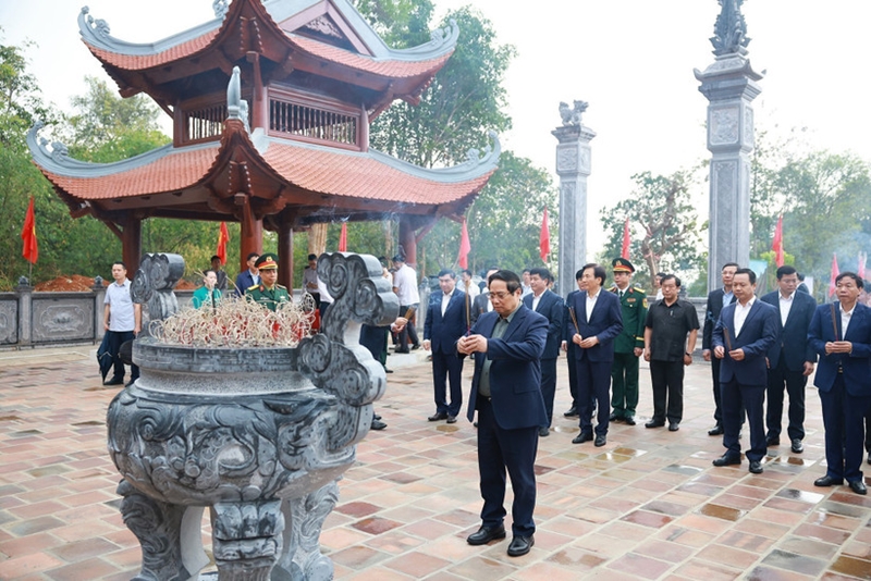 在奠边省工作期间,适逢奠边府大捷72周年(1954年5月7日—2026年5月7日)即将到来之际,3月8日上午,越南政府总理范明政率团前往奠边府战场遗址区的E2高地胡志明主席纪念馆、奠边府战场烈士祠及A1烈士陵园,敬献花圈并上香,深切缅怀胡志明主席及为民族解放事业英勇献身的英雄烈士。