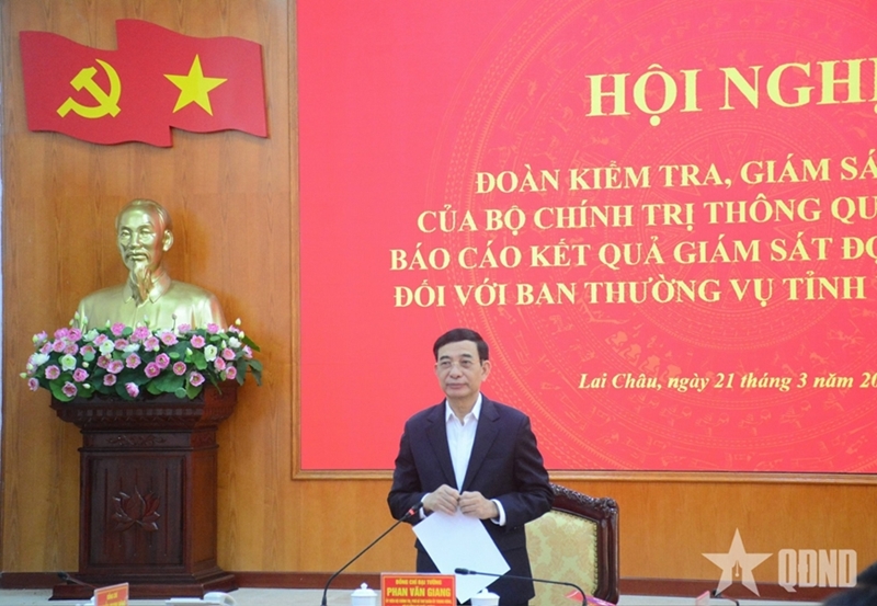 在会议上发言时,潘文江大将强调,在检查监督团评估基础上,建议莱州省高度重视经济、文化、社会发展,并将其与国防、安全保障任务紧密结合。莱州省委常委会要加大领导和指导力度,有效组织实施越共十四大决议,将其作为2026年及整个任期的重点任务;大力创新组织学习和研究决议的方式,推进信息技术应用和数字化转型;将政治任务的落实与检查、监督和结果评估相结合;确保实现从“学习、贯彻”向“正确理解、正确行动并取得实效”的转变。