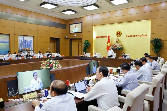 在为第十六届国会第一次会议举行前夕,4月5日,越共中央政治局委员、国会党组书记、国会主席陈青敏在国会大厦主持召开国会党委常务委员会与各省、直辖市国会代表团党组领导会议。